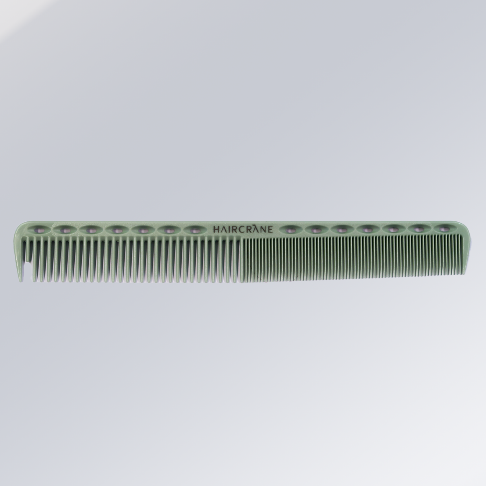 De Haircrane kam in de groene kleur met subtiel logo. Deze kam combineert functionaliteit met een vleugje kleur, waardoor het een stijlvolle en praktische toevoeging is aan je kapperskit!