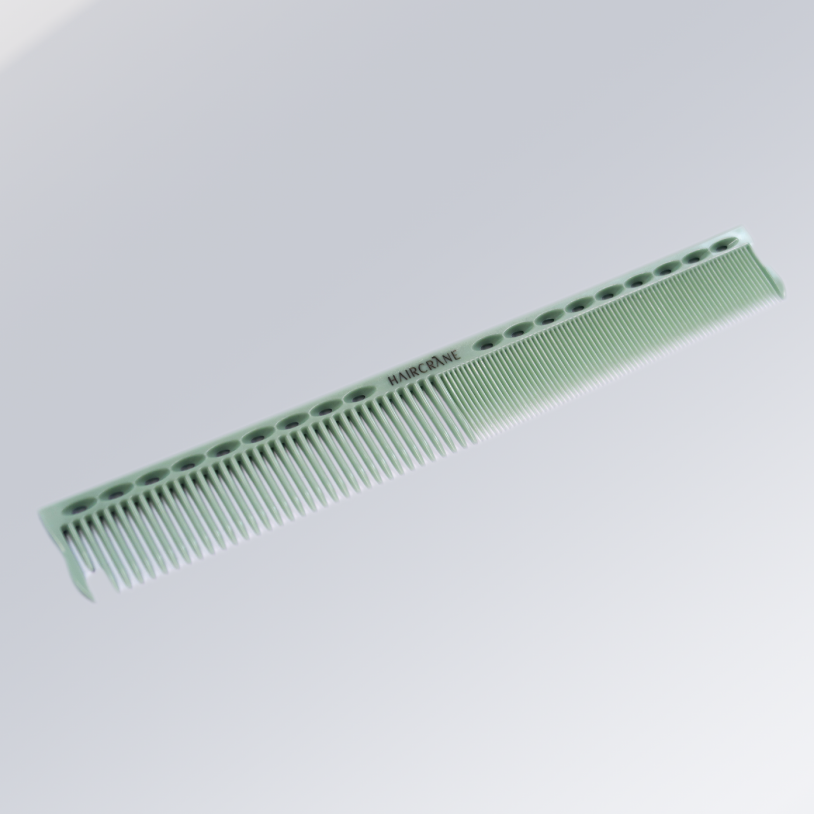 De Haircrane kam in de groene kleur met subtiel logo. Deze kam combineert functionaliteit met een vleugje kleur, waardoor het een stijlvolle en praktische toevoeging is aan je kapperskit!