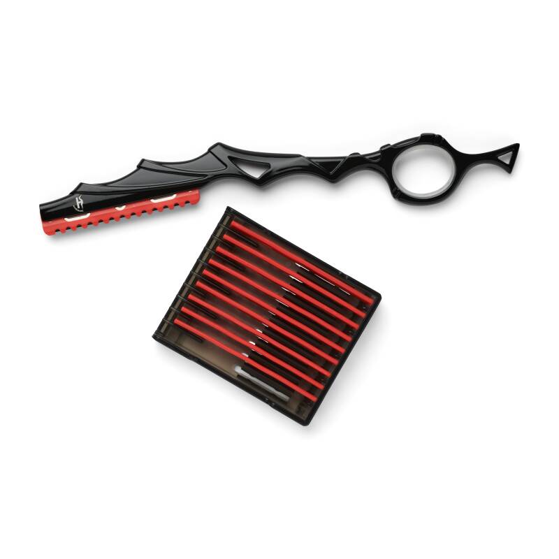 Natuurlijk kun je ook de richting bepalen door het mes op het haar te zetten. Deze razor is soft en het mes is gladder waardoor je het haar ontzettend goed kunt perfectioneren.